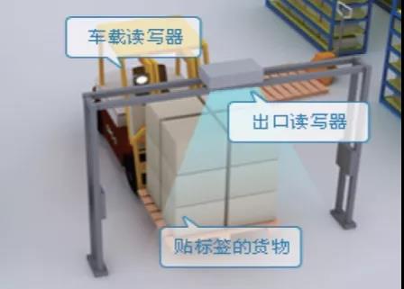 在倉庫或者車間出入庫口安裝物流門,物流門內集成安裝了RFID閱讀器、RFID天線、光電開關、三色警示燈等,可以自動且批量識別經過的車輛、容器、物料上安裝的RFID標簽信息。