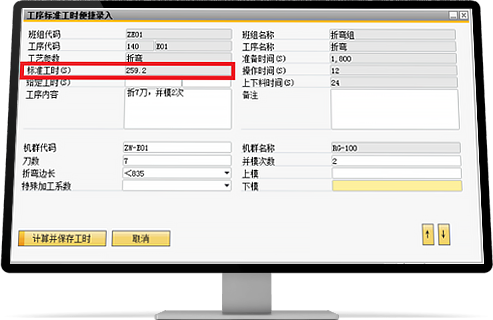 只需設置每道工序的加工參數,系統根據標準計算邏輯自動生成定額工時。